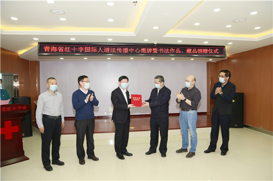 2月4日下午,青海红十字国际人道法传播中心揭牌仪式在中国造血干细胞捐献者资料库青海省分库(省人体器官捐献管理中心)举行。省人民政府副省长、省红十字会会长匡湧同志出席仪式并揭牌。揭牌仪式上,省红十字会党组书记,常务副会长孙林同志向青海红十字国际人道法传播中心捐赠书法作品《日内瓦公约》一至四部和157件藏品,匡湧副省长代表省红十字会接受捐赠并颁发捐赠证书。揭牌仪式后,匡湧副省长参观了青海红十字国际人道法传播中心和红十字廉政文化教育基地,详细了解两个场馆的建设和作用发挥情况。