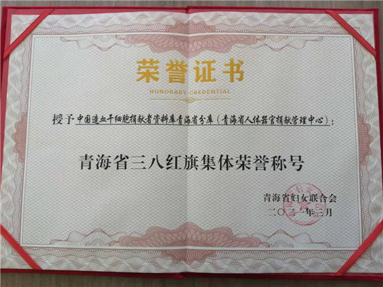在2021年“三八”国际劳动妇女节到来之际,中国造血干细胞捐献者资料库青海省分库(青海省人体器官捐献管理中心)被授予“青海省三八红旗集体”荣誉称号。3月3日下午,授牌仪式在分库(中心)举行。省妇联副主席拉毛措、权益部部长王瑞菊,省红十字会秘书长马常德及分库(中心)全体人员参加授牌仪式。