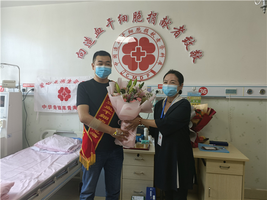 在海东市红十字会及“三献”工作站的努力下,在民和县人民医院,民和县转导乡的支持下,经过采集,刘立真成功捐献了造血干细胞,将给血液病患者带去珍贵的“生命种子”,带去生的希望。
