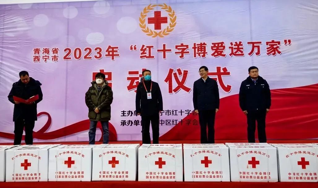 1月14日下午,青海省红十字会、西宁市红十字会2023年“红十字博爱送万家”活动启动仪式在西宁市举行。省红十字会党组成员、秘书长景鹏峰、西宁市红十字会党组书记、常务副会长叶智平出席启动仪式并讲话。启动仪式由市红十字会副会长张永福主持。来自市直、各区红十字会干部职工和近100名群众共同参加了“红十字博爱送万家”活动启动仪式。