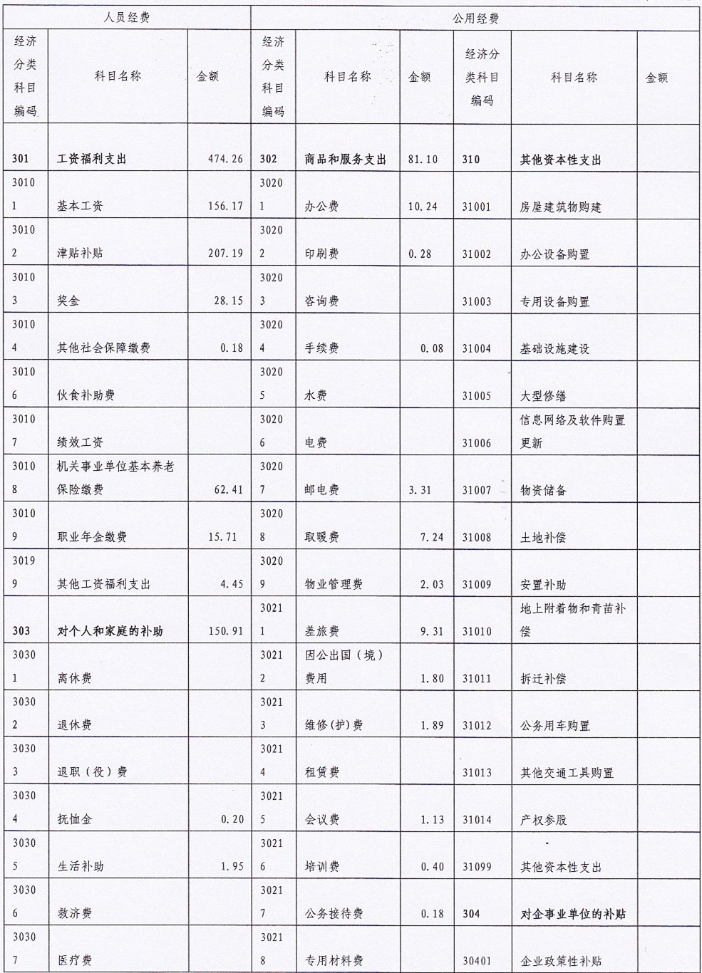 一般公共预算财政拨款基本支出决算表