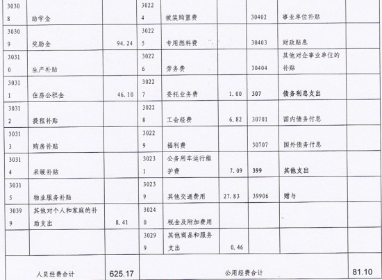 十六、“三公”经费财政拨款支出:指财政资金安排的因公出国(境)费、公务用车购置及运行费和公务接待费支出。其中,因公出国(境)费是指单位工作人员因公务出国(境)的往返机票费、住宿费、伙食费、培训费等支出;公务用车购置及运行费是指单位购置公务用车支出及公务用车使用过程中发生的租用费、燃料费、过路过桥费、保险费等支出;公务接待费支出是指单位按规定开支的各类公务接待(含外宾接待)支出。