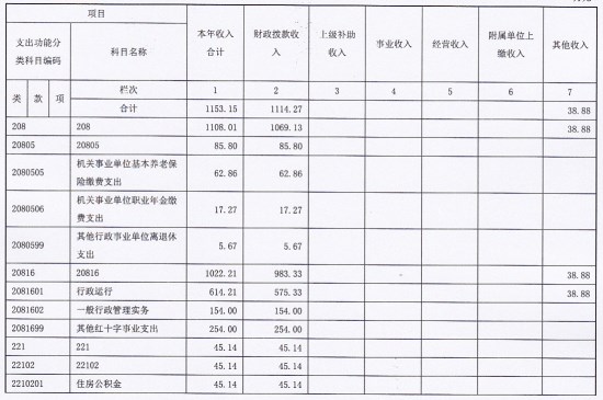 本年收入合计1153.15万元,其中:财政拨款收入1114.27万元,占96.63%;其他收入38.88万元,占3.37%。