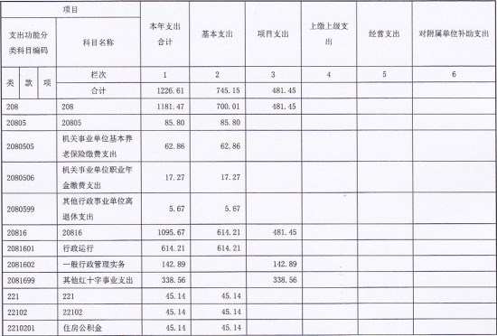本年支出合计1226.61万元,其中:基本支出745.15万元,占60.75%;项目支出481.46万元,占39.25%。